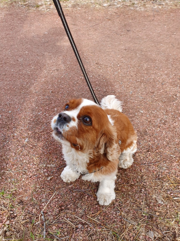 Den här processen upprepades ett par, tre gånger under promenaden. Allt var njutbart, Molle var sitt vanliga glada, gulliga jag, och jag tänkte att nu tar jag den där bilden… Men jag hade för mig att jag ville ha bilden framifrån så att den kunde visa just det där ansiktet som är så glatt och som gör mig så glad. Men icke… så fort jag tog fram telefonen så surnade han till. Jag gjorde ett sista försök när Molle hade kommit hem och vi sade ”hej då” till varandra. Avskedet var fint som vanligt, men när jag en sista gång tog fram kameran tittade han igen bort och skällde!