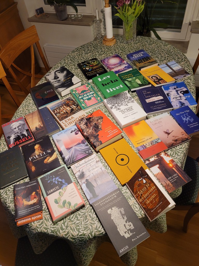 Nu är ju inte jag en särskild bildad människa eftersom jag tillhör generationen som satsade på utbildning, men jag ska göra ett rejält försök att bättra mig. På bokrean tog jag chansen att beställa 31 nya böcker. Igår kom dom…