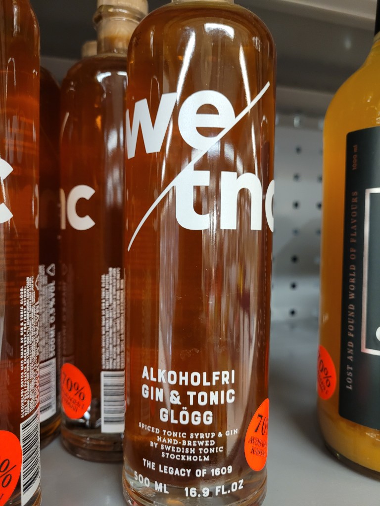 Jag avslutar med en riktigt dråplig självklarhet, fotograferad idag på en av mina absoluta favoritbutiker, men just i den här frågan tycker jag nog att man självklart kunnat inse att det skulle bli fel: Idag på Valborgsmässoafton kunde man alltså med 70 % rabatt få köpa ”Alkoholfri Gin Tonic Glögg”. Det finns så många fel i den kombinationen att jag undrar om ens 110 % rabatt räcker för att få varan från hyllan. Självklart kan jag ha fel. Det här kan ju vara någons absoluta favoritdryck…